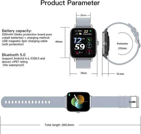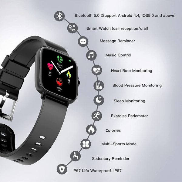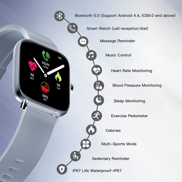 • Smart Watch 2021(Call Receive/Dial), 1.72 in HD Full Touch Screen Smartwatch Fitness Tracker with Call/Text/Heart Rate/Blood Pressure/Sleep Step Tracking, Fitness Watch for Android/iOS, Women Man